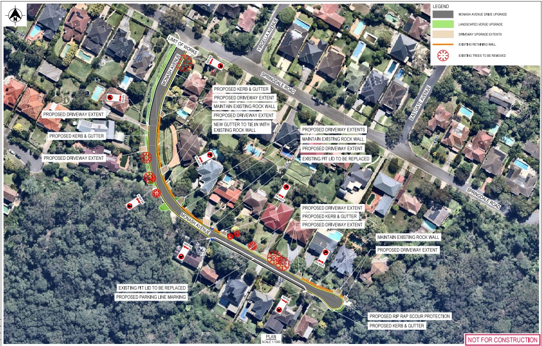 Council prioritises preserving high-value street trees where possible. Some removal may be required due to major root encroachment or poor tree condition.