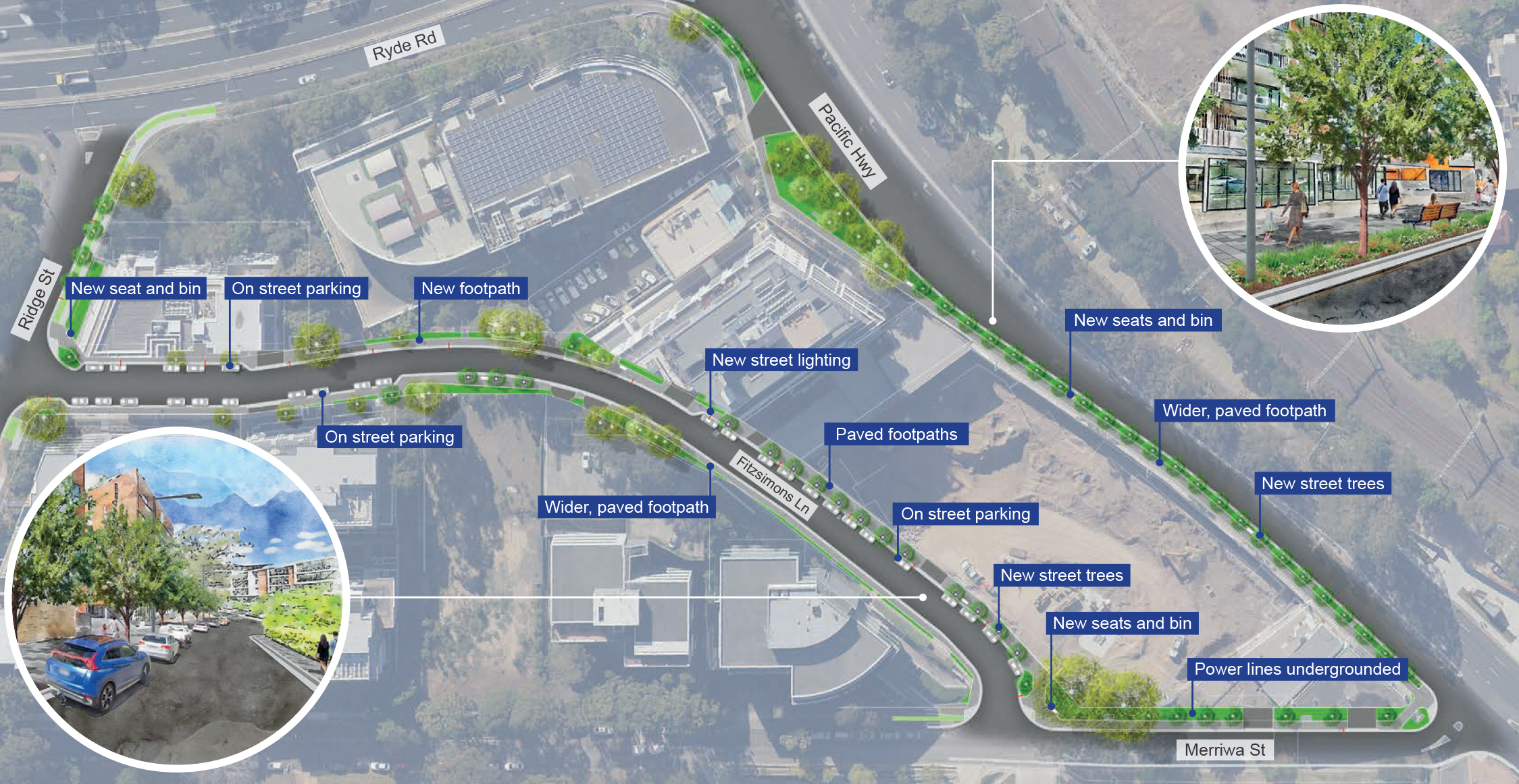 The upgraded streetscape will now also include the Pacific Highway frontage in front of and adjacent to Gregory & Carr. This expansion provides an opportunity to create a more cohesive streetscape experience and deliver greater benefits to the North Gordon community.